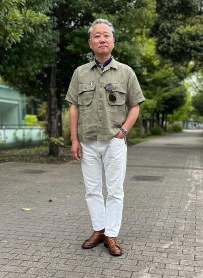 ## 究極の快適さを追求する「リネン半袖シャツ」 ベルギーコルトレイクリネンを使用したこの半袖シャツは、最高級のリネンを堪能できる逸品です。オープンカラーデザインにマチ付き胸ポケット、さらにサングラスホルダーや小物装着用タブなどの機能性も満載。釣り人に最適なフィッシングシャツとしても大推薦です。 暑い日でも快適に過ごせる上に、リネン独特の肌触りが一日中清涼感をもたらします。 夏のアウトドアやレジャーシーンでの貴重なパートナーとなること間違いなし。リラックスした雰囲気を演出しつつも、洗練されたスタイルを保ちたい方に是非おすすめしたい一着です。